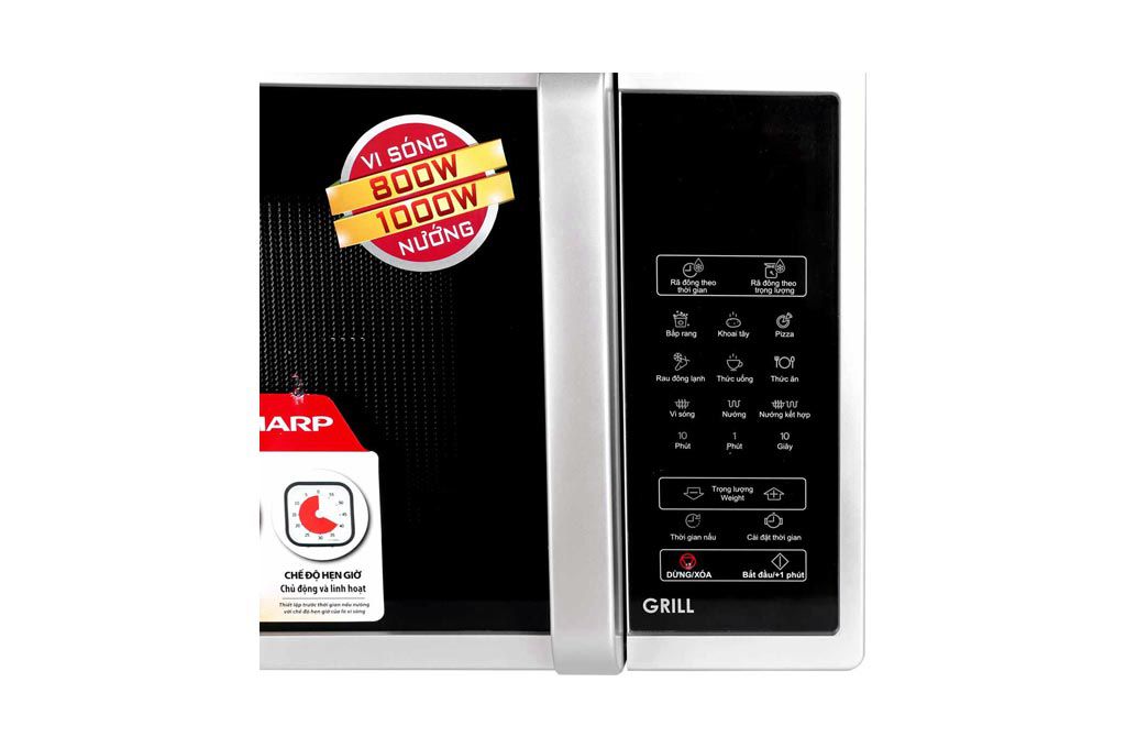 Lò vi sóng Sharp tích hợp chức năng nướng với công suất nướng 1000W kết hợp với 8 thực đơn tự động cho phép bạn lựa chọn các thực đơn nấu nướng và hâm nóng hàng ngày giúp bạn đa dạng thực đơn mỗi ngày cho gia đình.
