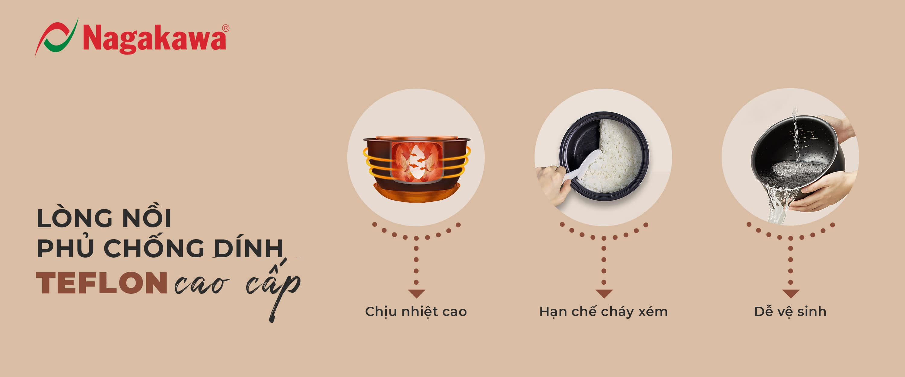 Lòng nồi phủ chống dính Teflon cao cấp khó bong tróc, đảm bảo vệ sinh an toàn thực phẩm, an toàn cho sức khỏe người tiêu dùng, dễ dàng vệ sinh sau mỗi lần sử dụng.